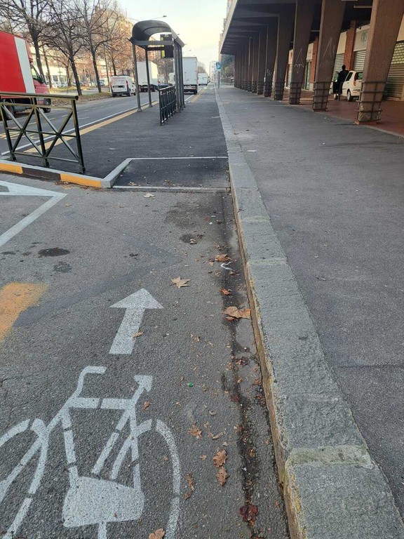 Particolare attenzione è stata dedicata anche al trasporto pubblico: le fermate sono state adeguate con banchine Gtt e un passaggio ciclabile sul retro della fermata, separato da transenne, per ridurre i conflitti tra bus, pedoni e biciclette.