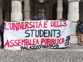 "Siamo qua per portare uno spazio di dialogo. Vogliamo mettere il punto sulla sicurezza: ricordiamo che Palazzo Nuovo è un luogo universitario dentro il quale ci sono aule stalla, incapaci di contenere gli studenti e soprattutto c'è l'amianto. Per anni e anni sono state lasciate aule con materiale tossico e queste motivazioni di sicurezza non sono mai state poste".