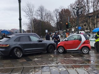 Traffico in tilt questa mattina alla Gran Madre per un incidente tra due vetture. Intorno alle 8.30 si è verificato un sinistro davanti alla chiesa del centro di Torino: secondo una prima ricostruzione una Smart proveniente dalla collina è andata a scontrarsi frontalmente contro un Porsche Carrera, che dal ponte Vittorio stava girando a sinistra in corso Casale.