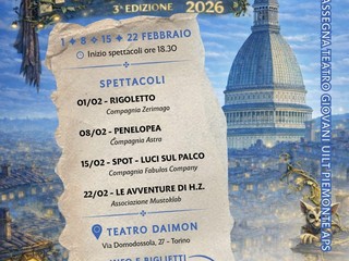 A dare il via alla rassegna sarà, domenica 1° febbraio alle ore 18.30, lo spettacolo "Rigoletto in prosa", una trasposizione dell'omonima opera di Giuseppe Verdi, della Compagnia Zerimago, composta interamente da membri Under 35. Zerimago è partita da un'attenta analisi dell'opera, la sua genesi, le intenzioni originali, per rispettare l'immenso valore creandone la sua versione: le musiche diventano suoni, un omaggio al genio di Verdi, mentre del testo rimangono le parole, le melodie dei pensieri dei personaggi. Rigoletto è una storia di amore, odio, vendetta e dolore, ma soprattutto una potente critica sociale: un grido di giustizia universale. La forza dell'opera risiede nell'attualità dei suoi temi che, oggi più che mai, in un contesto di crisi e instabilità globale, meritano di essere riportati al centro del dibattito, anche attraverso il teatro. L'adattamento è di Salvatore Porretta, la regia di Giulia Luna Ricaldone.