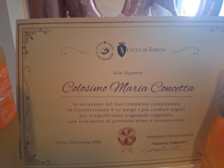 La festa è stata organizzata dal consigliere comunale della Lega Giuseppe Catizone insieme al presidente della Circoscrizione 6 Valerio Lomanto, che ha consegnato una targa alla signora Colosimo per celebrare un traguardo che è diventato, per tutto il quartiere, un piccolo grande evento.
