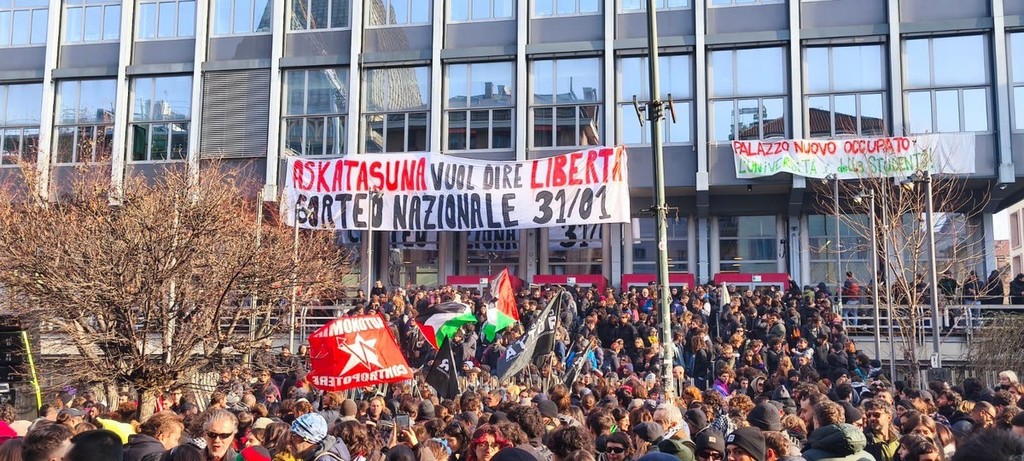 È partito anche lo spezzone di Palazzo Nuovo, in direzione via Po come da programma. In prima fila un grande striscione con il manifesto di Zerocalcare. "Hanno pensato che sgomberare il centro sociale Askatasuna fosse la fine delle lotte, di chi non ci sta, di chi vuole un futuro diverso - hanno gridato dal centro sociale -. Invece diciamo grazie Meloni perché oggi siamo migliaia e saremo molti di più, saremo molto più uniti.