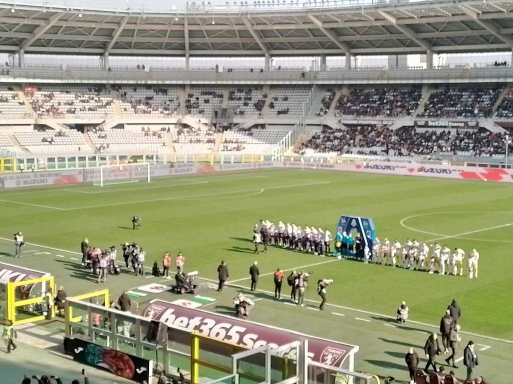 L'unica parte dello stadio Olimpico-Grande Torino abbastanza piena sono i Distinti centrali, grazie alla politica dei prezzi bassissimi scelta dalla società per provare a richiamare gente, oltre alla presenza dei ragazzi delle scuole calcio (accompagnati dai familiari). Il quadro appare comunque desolante, confermando una volta di più lo scollamento sempre più evidente tra il pubblico granata e la proprietà: gli unici cori che si sono uditi, infatti, sono stati contro il presidente Cairo, invitando a vendere e andarsene. Dopo che nelle scorse ore erano tornati a campeggiare striscioni contro il patron granata in diversi punti di Torino.