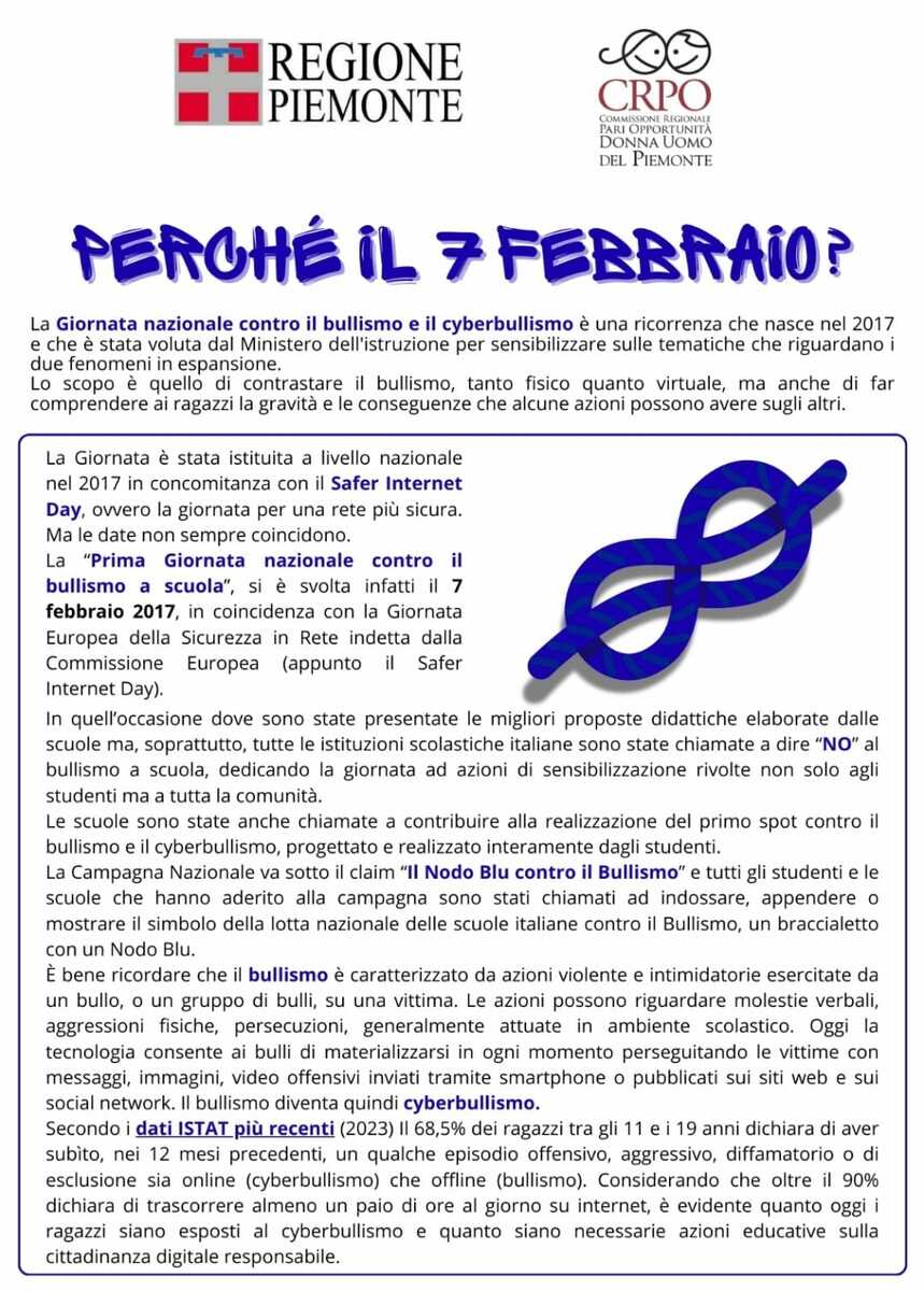 In occasione della Giornata Nazionale contro il Bullismo e il Cyberbullismo, che si celebra oggi, la Commissione Regionale per le Pari Opportunità desidera richiamare l'attenzione su due fenomeni che continuano a colpire molti giovani nel nostro territorio.