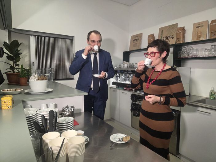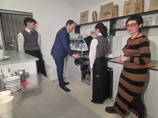 Il pomeriggio si è concluso con il taglio del nastro e la presentazione operativa del bar a cura di Marco Muzzarelli, direttore nazionale ENGIM, affiancato dagli allievi che inizieranno ufficialmente l’attività di gestione della struttura.