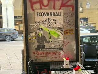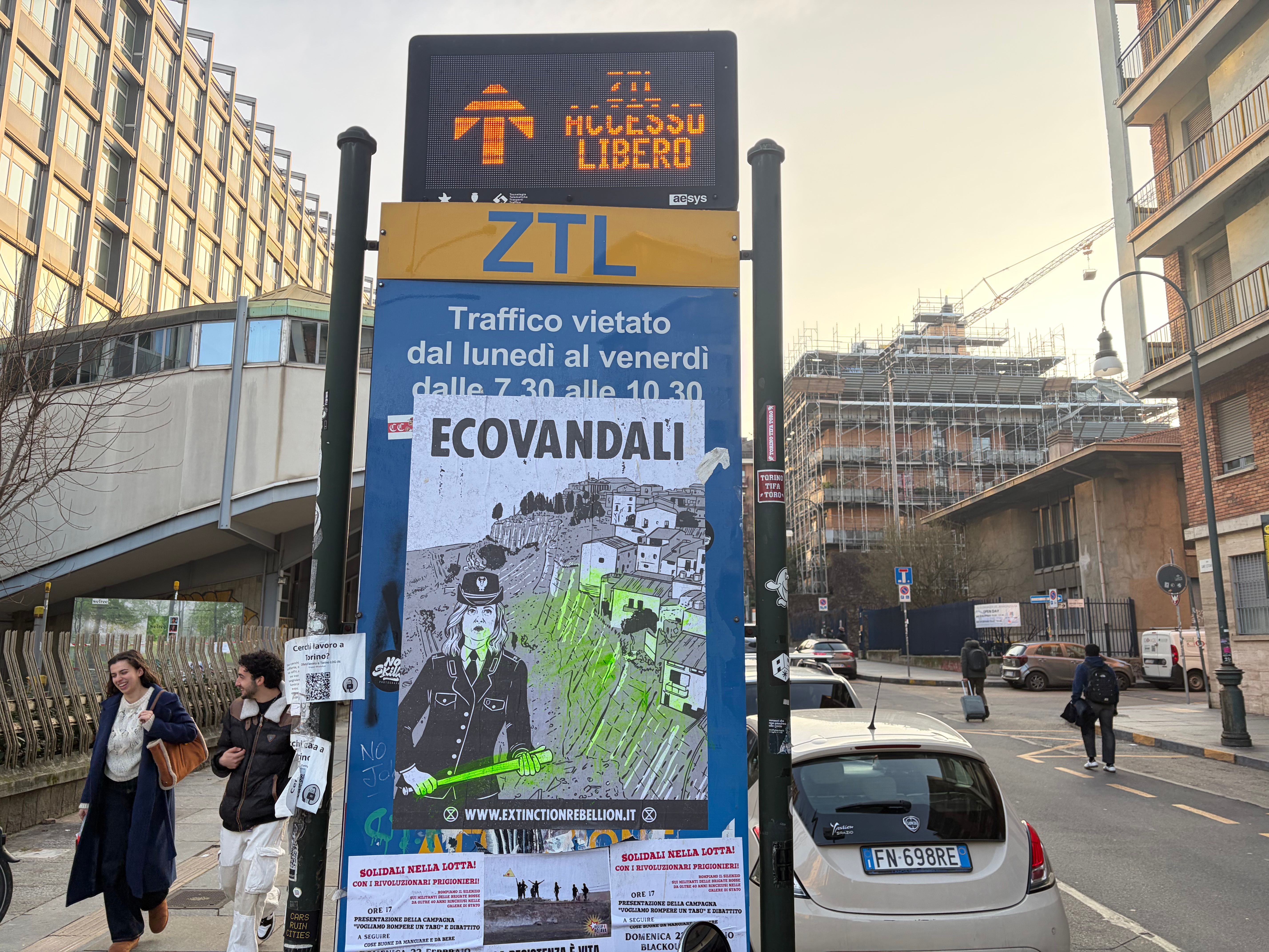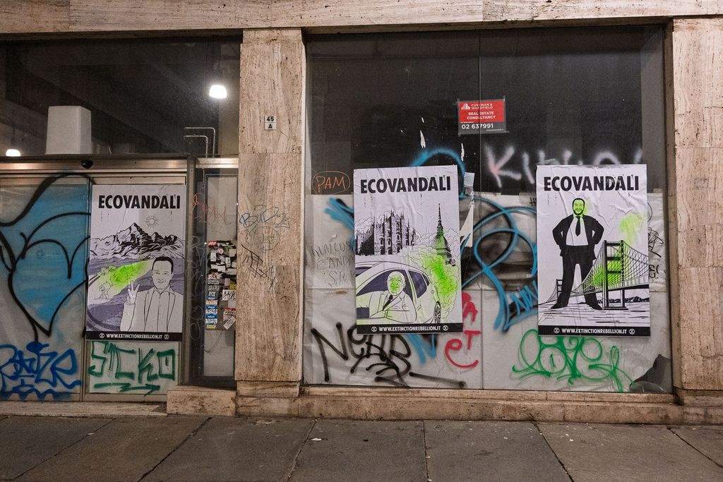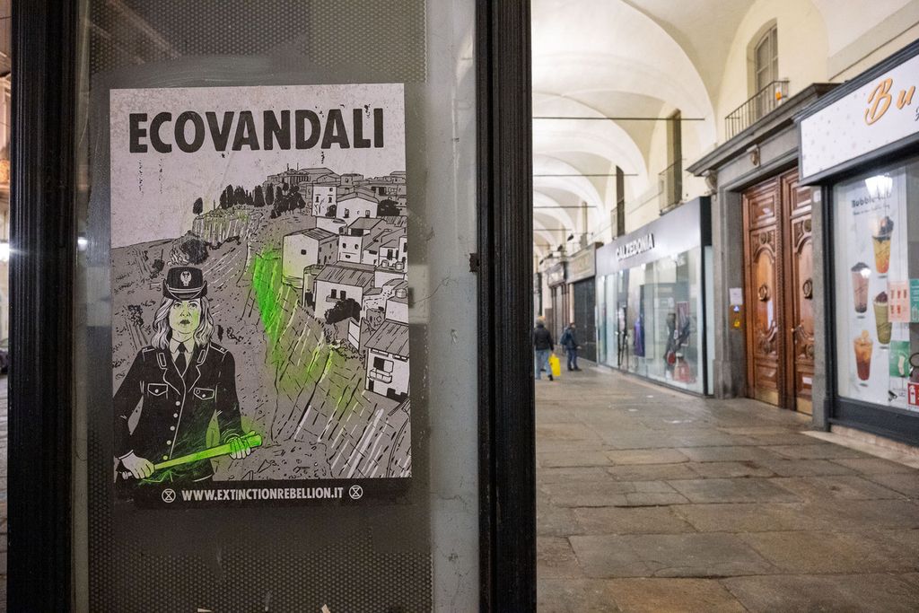 I poster provocatori di Extinction Rebellion invadono il centro di Torino. “Ecovandalo è il governo”