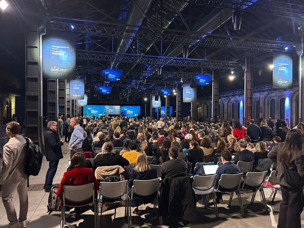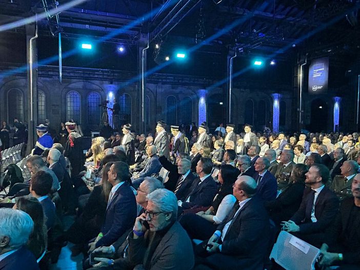 Il primo elemento di novità è innanzitutto la cornice: non più l'aula magna di corso Duca degli Abruzzi, ma le Officine Grandi Riparazioni. Qui il rettore Stefano Corgnati a voluto chiamare a raccolta tutto il popolo di PoliTo, a cominciare dai tre rettori che lo hanno preceduto: Guido Saracco, Marco Gilli e Francesco Profumo. Tanti i rappresentanti arrivati anche da altri atenei italiani.