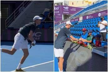 Jannik Sinner è a Doha. Oggi, sabato 14 febbraio, il tennista azzurro è sceso in campo per testare il cemento qatariota, nel suo primo allenamento in vista dell'Atp 500 al via lunedì 16 febbraio. Tanti sorrisi in campo per Sinner, che guidato dall'allenatore Simone Vagnozzi e dal suo team ha eseguito un breve riscaldamento, con scatti e ed esercizi per allenare i riflessi, prima di impugnare la racchetta.