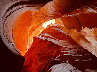 Arriviamo a Page, dove si trova Horseshoe Bend, l’ansa perfetta del fiume Colorado, una forma così regolare da sembrare disegnata. Poco distante c’è Lake Powell, un lago artificiale incastonato tra le rocce rosse. Poi Antelope Canyon. Dove abbiamo scelto Canyon X, meno affollato e più raccolto. Qui la luce entra lentamente, scivola sulle pareti e le scolpisce con le ombre. È il luogo che più di tutti mi è rimasto addosso. Il fatto che non lo attraversi soltanto: lo vivi. Si entra solo con guide navajo, che raccontano la storia del canyon e il suo significato profondo. Cammini dentro una scultura modellata dall’acqua e dal vento in migliaia di anni. A un certo punto, una guida inizia a suonare uno strumento tradizionale. Il suono rimbalza sulle pareti, amplificato dallo spazio. In quel momento capisci che non stai semplicemente osservando un luogo, ma partecipando a qualcosa di più grande.