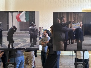 Tra le foto in mostra anche uno scatto significativo che riprende una scena in cui l’attore torinese Cesare Scova sta per inciampare sul tappeto steso a Palazzo Reale.
