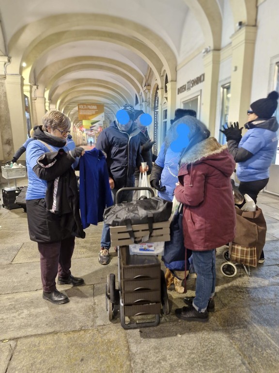 Un carrellino, thermos di caffè caldo, sacchetti con un pasto completo e qualche parola scambiata sotto i portici del centro. Ogni domenica sera, tra il Duomo, Galleria San Federico, via Roma e corso Vittorio Emanuele II, dodici volontari dell’associazione Aps “Progetto insieme a…” percorrono le stesse strade con un obiettivo preciso: tendere una mano a chi vive in strada.