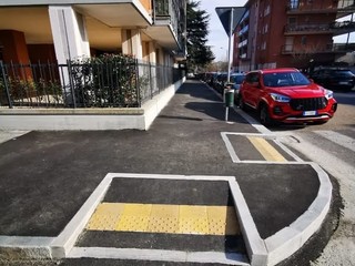 L’intervento prevede il rifacimento completo dei marciapiedi su entrambi i lati della carreggiata, con particolare attenzione all’eliminazione delle barriere architettoniche. Saranno realizzati 16 nuovi scivoli in corrispondenza degli attraversamenti pedonali e degli incroci, per facilitare la mobilità di persone con disabilità, anziani e famiglie con passeggini.