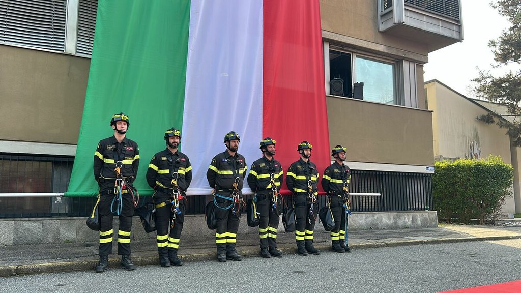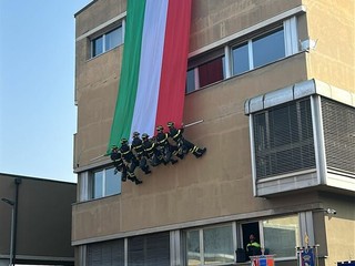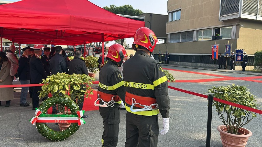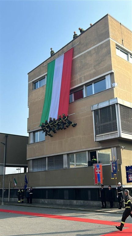 Inno nazionale e gonfaloni hanno reso onore alla cerimonia ospitata in corso Regina Margherita 330. Il tricolore è stato srotolato sul fianco di uno degli edifici del Comando, grazie ad alcuni vigili del fuoco che si sono calati dal tetto. Si protrae così una storia iniziata nei secoli scorsi, ma che ha avuto ruoli decisivi anche durante la Resistenza, partecipando alla lotta di Liberazione con una squadra formata unicamente da vigili del fuoco.