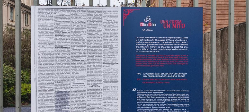 La storica Milano-Torino compie 150 anni e festeggia ai piedi della Mole. La più antica gara di ciclismo del mondo tra quelle ancora in attività si terrà il prossimo 18 marzo e, da ieri fino al giorno della partenza, la cancellata del Museo del Cinema ospiterà alcuni degli scatti più iconici della corsa. Dal vincitore della terza edizione del 1896 Giovanni Moro, a quello dell'ultima, Isaac Del Toro, con le braccia all'indietro di fronte alla Basilica di Superga. Oltre alle foto anche stralci di giornale, come l'articolo del Corriere della Sera sulla prima edizione in quel lontano 1876.