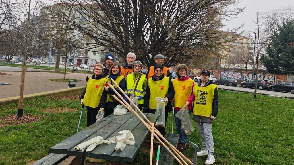 Mattinata di impegno civico al parco San Paolo di via Braccini, dove un gruppo di volontari di Torino Spazio Pubblico è sceso in campo quasi al completo per un nuovo intervento di cura e manutenzione dell’area verde.