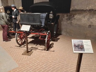 Accanto alle carrozze, la mostra presenta una selezione significativa di automobili delle origini provenienti dalla preziosa collezione del MAUTO: la Benz Victoria del 1893 progettata da Karl Benz, considerato con Gottlieb Daimler il padre dell’automobile; la Decauville 3½ HP, vincitrice della Parigi-Amsterdam-Parigi del 1898; la Hurtu 3 HP del 1898; la De Dion-Bouton 1¾ HP del 1899, versione a quattro ruote prodotta dai vincitori della prima corsa automobilistica al mondo, la Parigi-Rouen. Clément-Panhard VCP 3 HP del 1899.
