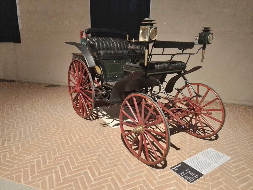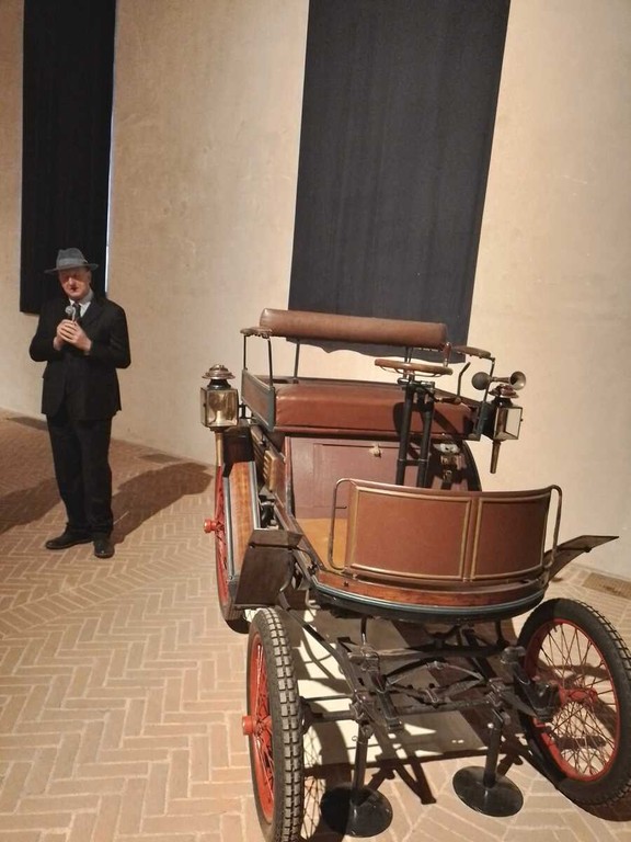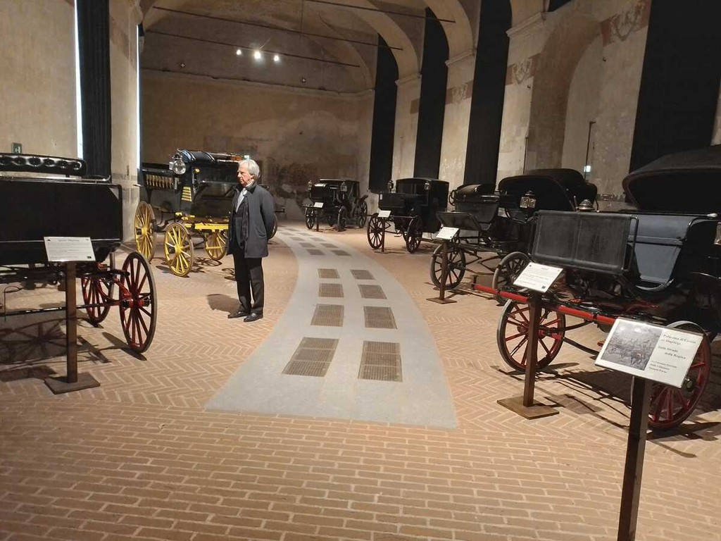 Il percorso espositivo attraversa un secolo di cambiamenti culturali e tecnologici, dalle carrozze - come Landau Ronde, Phaeton, Coupè Brougham, espressioni di prestigio, ritualità e status sociale - alle prime automobili italiane e straniere, tra cui Fiat Tipo Zero A, Isotta Fraschini BN 30/40 HP, Oldsmobile 6C Curved Dash, Benz Victoria. Ogni mezzo racconta un mondo in trasformazione: dalla lentezza e ritualità dei viaggi in carrozza, segno evidente di rango e potere, alla novità e al fascino delle prime automobili, ancora rare e sorprendenti, che condividono le strade con i cavalli. Costruttori come Benz, Fiat, Decauville, De Dion Bouton presentano modelli unici, spesso realizzati su misura e destinati a una committenza limitata e selezionata.