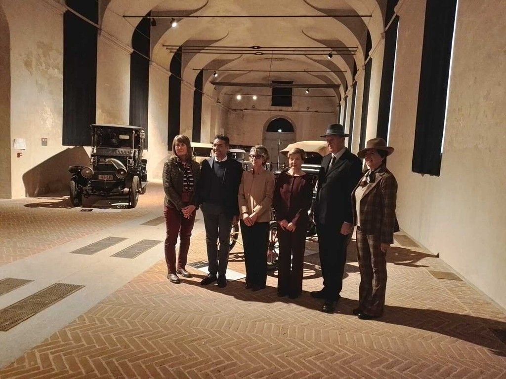 Il racconto si intreccia poi con la figura di Margherita di Savoia, che durante la sua permanenza a Stupinigi visse in prima persona questa fase di transizione. Attenta alle innovazioni e alle nuove tecnologie, la Regina utilizzò sia le carrozze tradizionali sia le prime automobili, diventando testimone e protagonista dei modelli di mobilità tra la fine dell’Ottocento e l’inizio del Novecento. Lei stessa aveva la patente di guida e possedeva una scuderia di tredici automobili, ciascuna identificata da un nome di uccello: Palombella, Falco, Falchetto, Sparviero, Aquila, Alcione, Condor, Allodola, Stornello.