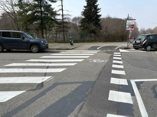 La pista si collega direttamente anche con quella di via Nizza. All’angolo tra le due strade è stata infatti disegnata a terra un’isola di traffico che organizza meglio i flussi e permette il raccordo tra i due percorsi ciclabili. Da qui parte anche un altro tratto bidirezionale che passa vicino alla scuola Re Umberto e prosegue in direzione corso Roma, verso Moncalieri.