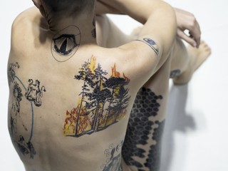 Il corpo della performer diventa il centro di questa esperienza scenica: un corpo “transumante”, segnato come un tatuaggio vivente, che attraversa suoni primordiali, immagini visionarie e linguaggi performativi. In questo spazio simbolico gesto, voce, musica e immagini si fondono in un’unica preghiera laica.