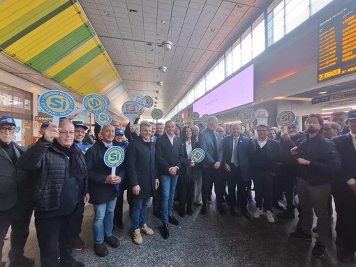 È partita questa mattina dalla stazione di Porta Nuova la delegazione piemontese di Forza Italia diretta a Milano per la conferenza stampa nazionale della campagna "Una freccia per il Sì", l'iniziativa itinerante con cui il partito promuove il voto favorevole al referendum sulla giustizia del 22 e 23 marzo.