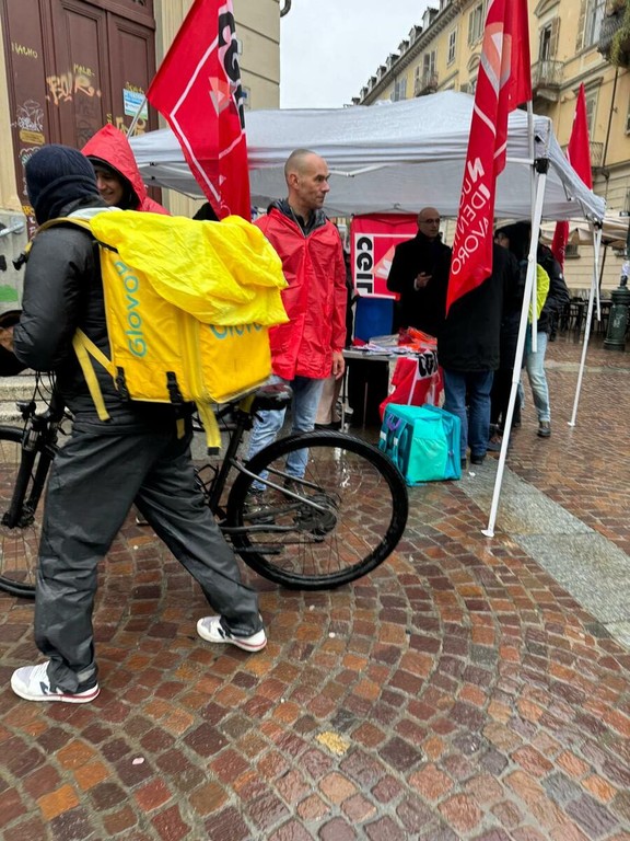 L'iniziativa di oggi si schiera contro la precarietà e per chiedere salario dignitoso, stabilità, diritti e tutele. Proprio davanti alle vetrine di una catena di fast food si alternano interventi di lavoratrici e lavoratori rider in piazza con testimonianze e rivendicazioni.