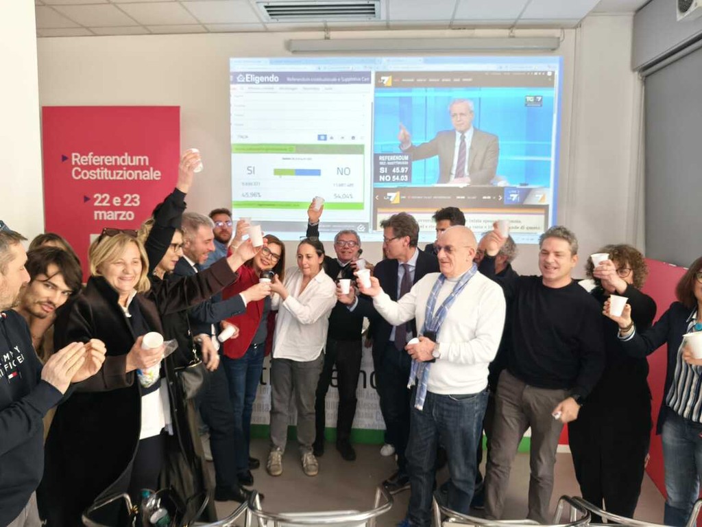 Aria di festa nelle sedi del M5S, Pd ed AVS/SE di Torino, dopo la netta vittoria del no al referendum sulla Giustizia. I pentastellati in via Colautti 7 hanno brindato - non solo metaforicamente, ma anche con calici, bicchieri e spumante - al risultato.