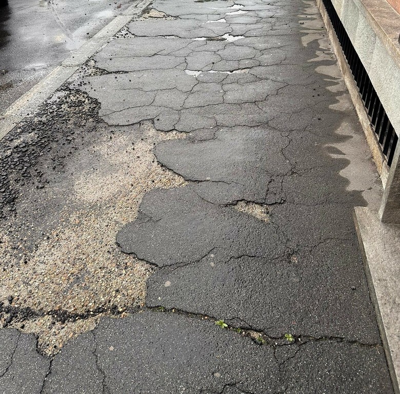 Buche ed asfalto danneggiato in numerosi punti: è così che si presenta il marciapiede di via Onorato Vigliani, tra i civici 149 e 151. Uno stato di profondo ammaloramento, con avvallamenti che mettono a rischio la percorrenza del tratto per chi si trova su una sedia a rotelle oppure fatica a camminare.
