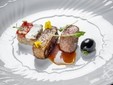 L'agnello è locale, sambucano, dalla carne compatta e delicata. Viene servito in due cotture. Il lingottino di spalla e coscia e la Chateaubriand. Ad accompagnare una melenzana alla parmigiana ricreata nella forma di oliva con miso di pomodoro, e tartare di melanzana con aria di latticello. Rombo. Piselli, fave, asparagi e curry verde. Un piatto che porta in tavola la primavera, alla vista nei suoi colori vivaci e al palato. Una ventata di mare tra le colline, con il sapore delicato del Rombo che si incontra con il vegetale in una piacevole leggerezza. Il tutto accompagnato da un bite di pizza di scarola che rimanda la mente alle domeniche pasquali.