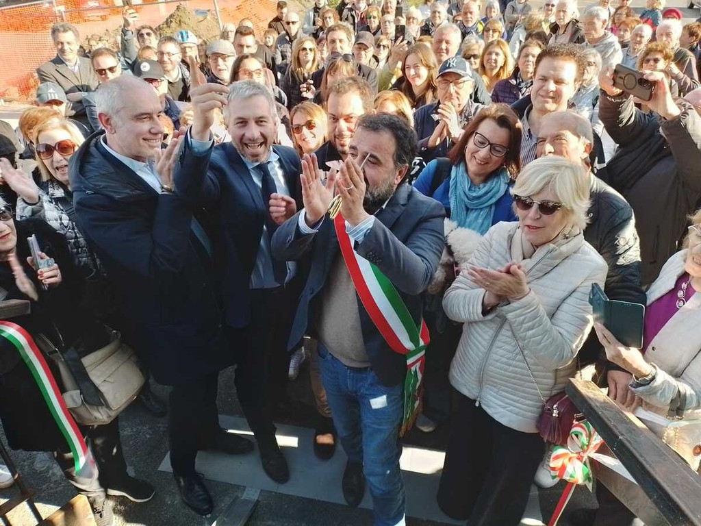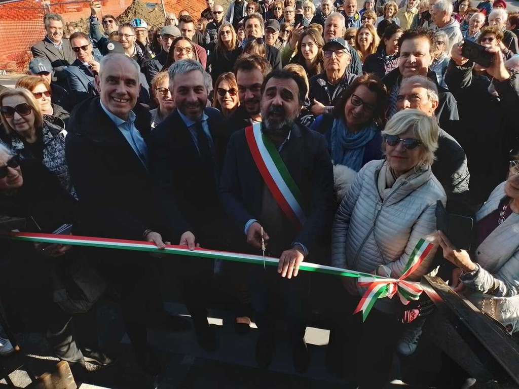 Poi l'assessore ai Lavori pubblici Angelo Ferrero, dopo i ringraziamenti di rito, ha ricordato il lungo lavoro fatto per arrivare a questo risultato. "Abbiamo cercato di fare questa passerella la più bella possibile, con i display luminosi per far conoscere le nostre iniziative sul territorio, gli ascensori e il verde della struttura, in onore del vicino parco delle Vallere".