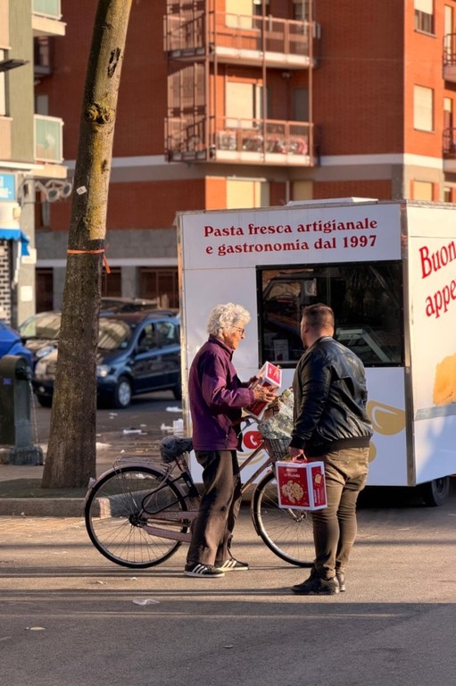 In occasione delle festività pasquali, presso il mercato di corso Brunelleschi il coordinatore di Fratelli d'Italia circoscrizione 3 Martino Prati e il consigliere di Circoscrizione 3 Stefano Bolognesi si sono recati per compiere un gesto concreto di solidarietà. Durante l’iniziativa sono state donate colombe pasquali alle persone che, al termine dei mercati, raccolgono alimenti rimasti a terra.