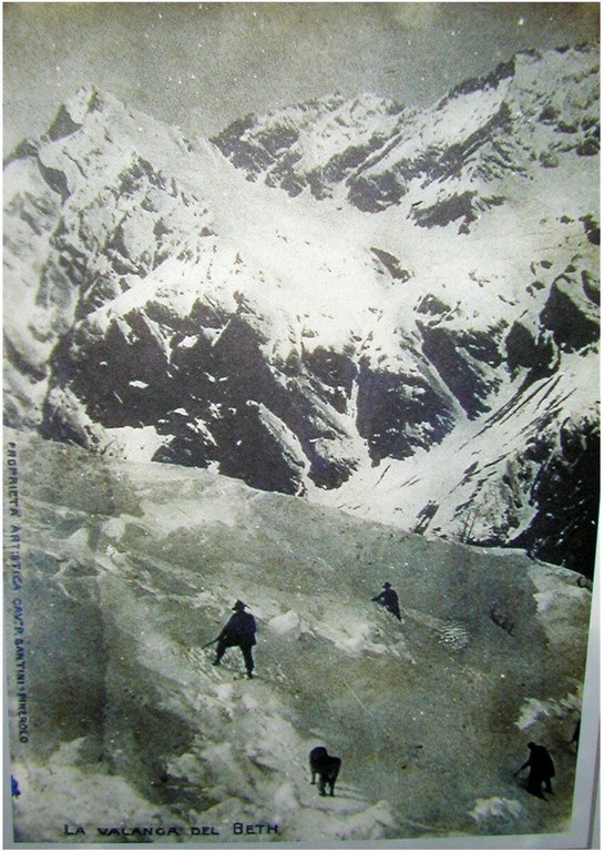 La storia industriale delle miniere di rame realizzate in Val Troncea a oltre 2700 metri di quota era iniziata nel 1863 con la concessione acquisita dall’imprenditore torinese Pietro Giani. L’iniziativa conobbe vicende travagliate dal punto di vista economico, ma fu anche un’occasione per la sperimentazione di nuove tecniche estrattive. La storia delle miniere del Beth si interruppe però nel peggiore dei modi, martedì 19 aprile 1904. Nei giorni precedenti gli operai, ormai a corto di viveri, impressionati dalle forti e persistenti nevicate, dai rumori e dal pericolo imminente, avevano deciso di scendere a valle per trascorrere la Pasqua in famiglia. Si narra che i minatori locali, che conoscevano i pericoli dell’alta montagna, avessero proposto invano ai compagni di ricoverarsi nelle gallerie delle miniere, portando con sé gli attrezzi, per poi liberarsi una volta che la valanga incombente fosse caduta.