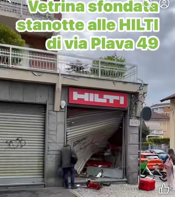 I malviventi hanno preso di mira il negozio Hilti di via Plava