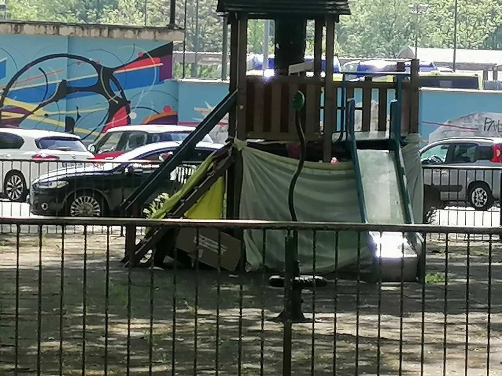 Secondo quanto riferito, un individuo avrebbe occupato lo spazio del gioco per creare un riparo di fortuna. Una situazione che, oltre a sottrarre ai più piccoli uno spazio dedicato al divertimento, solleva anche problemi di sicurezza e igiene.