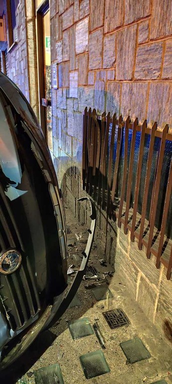 L’urto è stato particolarmente violento: uno dei veicoli parcheggiati si è ribaltato, finendo contro la facciata di un edificio.