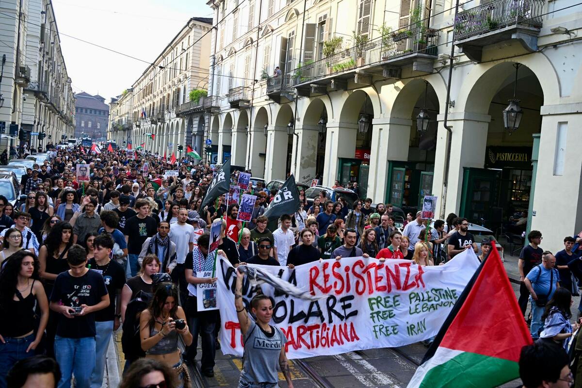 Un sabato in corteo che apre due settimane di mobilitazione. Tornano a sfilare per le vie della città gli attivisti del centro sociale Askatasuna e il comitato Torino per Gaza. Quello di oggi è il primo appuntamento di una serie di iniziative che attraverseranno le celebrazioni del 25 aprile fino a culminare nel Primo Maggio.