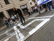 Il gruppo prosegue verso piazza Castello al grido di "Noi la guerra non la vogliamo". Altre scritte sono state fatte sui sampietrini in piazza Castello. E' stata composta la scritta Torino Partigiana.