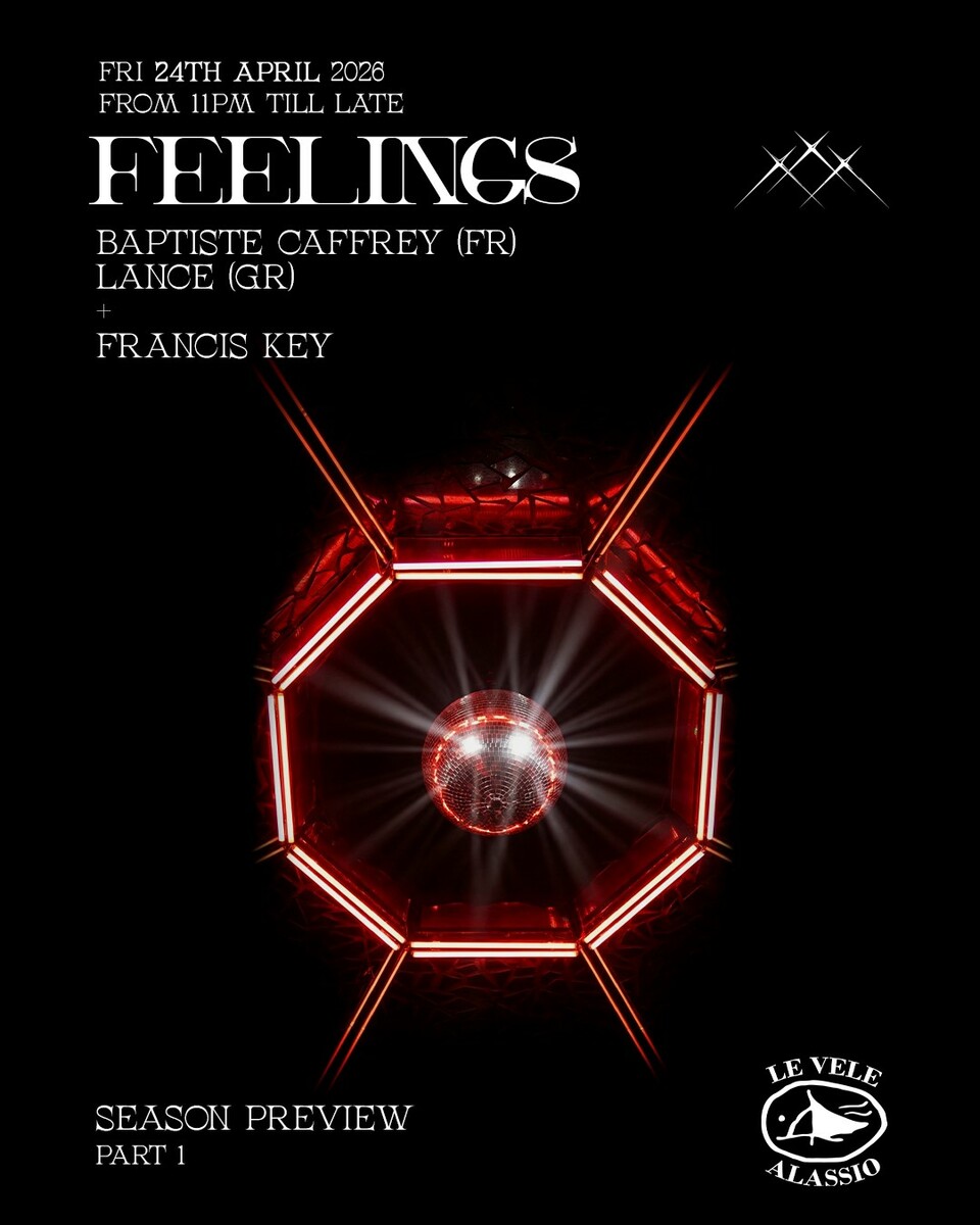 Si parte venerdì 24 aprile dalle ore 23:00 con la prima anteprima d'estate di Feelings, il party che promette vibrazioni coinvolgenti e sonorità Afro House e Indie Dance. In consolle torna a Feelings, direttamente dai più prestigiosi Club di Parigi, Baptiste Caffrey, affiancato dal DJ greco Lance e dalla colonna portante del format, Francis Key. Un mix di energia internazionale e talento consolidato per inaugurare una nuova stagione di emozioni.