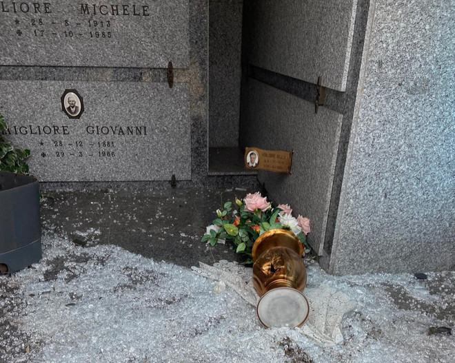 Anche questa volta il bilancio è pesante: almeno sei tombe di famiglia violate, vetri infranti e strutture forzate per portare via portoni in rame e ottone, vasi bronzati e altri elementi metallici. A terra restano i segni evidenti del passaggio dei ladri: frammenti di vetro, oggetti divelti e fiori abbandonati accanto alle lapidi danneggiate.