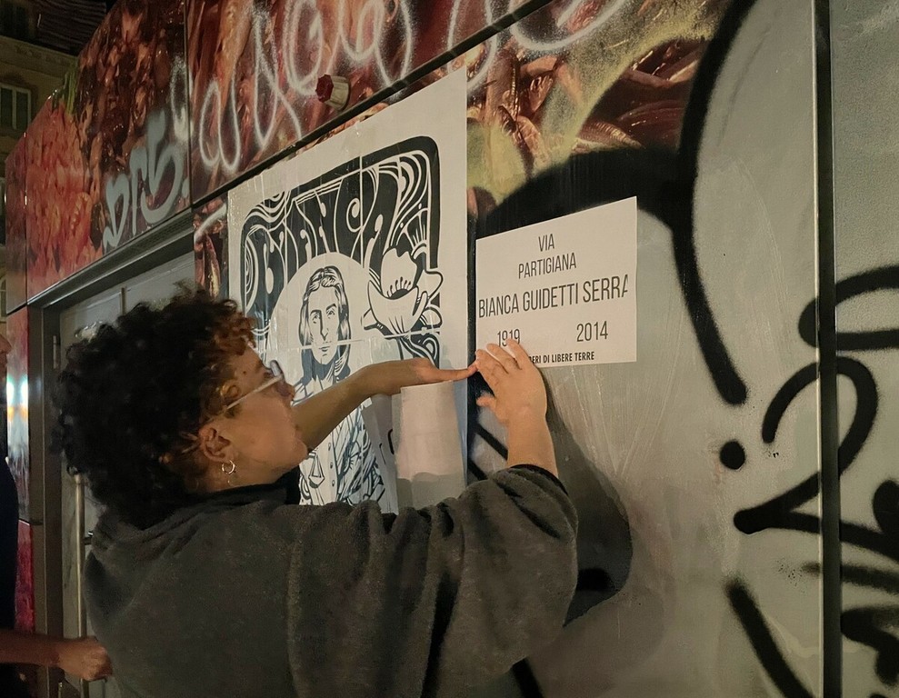 “In una città come Torino, dove ancora molte strade sono intitolate a generali dell’epoca fascista coinvolti in campagne coloniali che hanno distrutto ecosistemi e represso popoli, riprenderci gli spazi pubblici affiggendo figure partigiane è un atto di resistenza”.