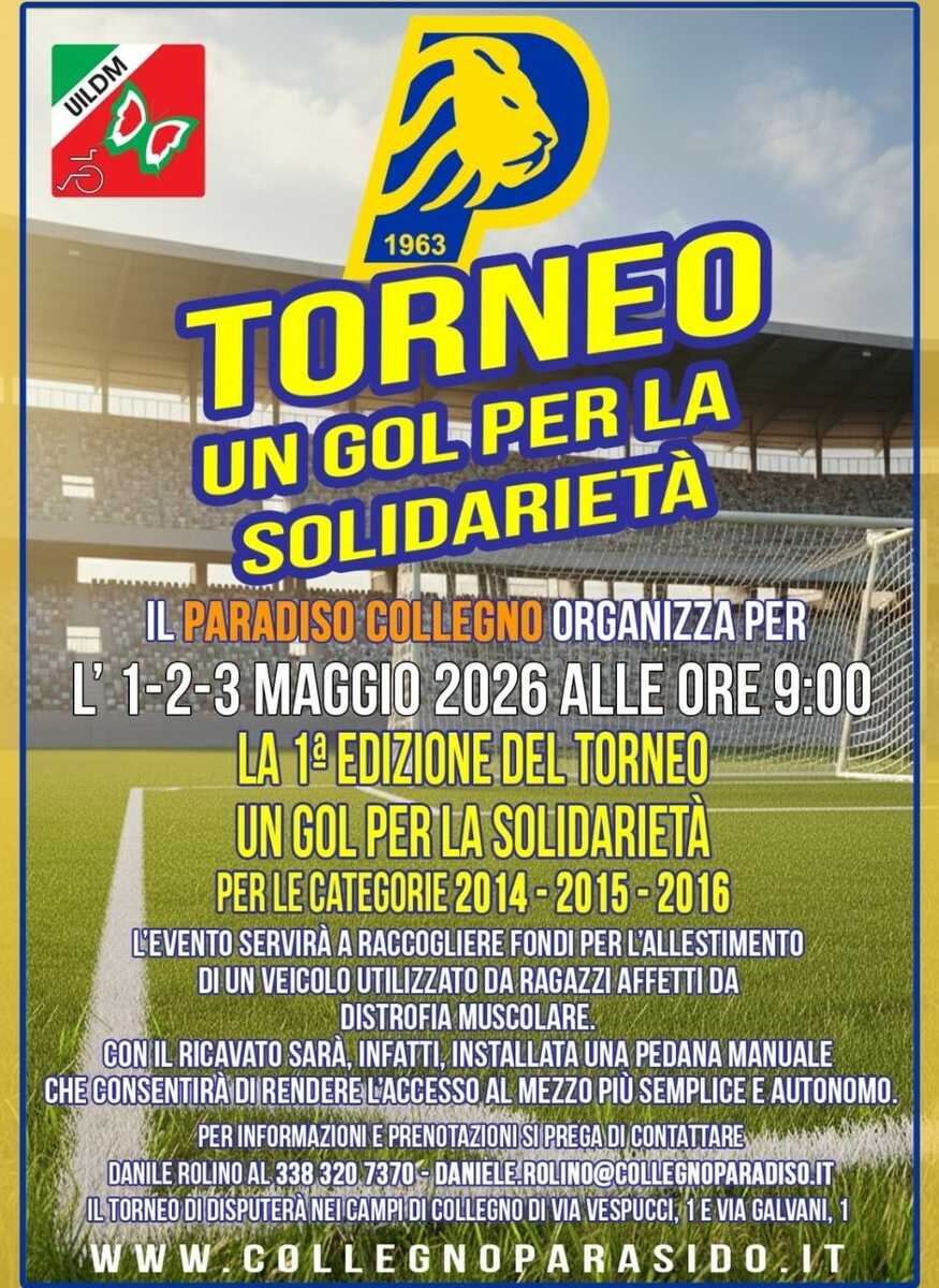 È la prima edizione del Torneo di calcio “Un gol per la solidarietà”, l’evento organizzato dalla società Paradiso Collegno l’1, il 2 e il 3 maggio per raccogliere fondi per modificare la pedana di un veicolo utilizzato da ragazzi affetti da distrofia muscolare appartenenti alla sezione torinese dell’Uildm, l’Unione italiana lotta alla distrofia muscolare. Con il ricavato sarà, infatti, installata una pedana manuale e non più elettrica, che consentirà di rendere l’accesso ai mezzi per i ragazzi con disabilità, affetti da distrofia muscolare, più semplice e autonomo.