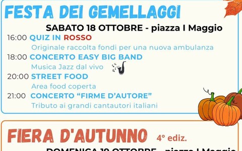 Festa dei gemellaggi e Fiera d'Autunno: doppio appuntamento nel weekend a Trofarello