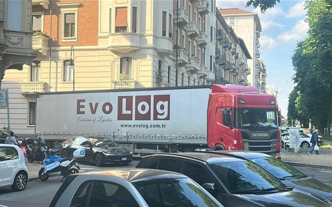 Tir tenta la svolta e si incastra contro un'auto parcheggiata: controviale bloccato alla Crocetta [FOTO]